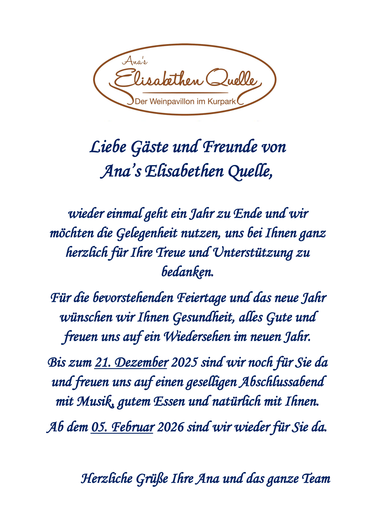 Schinken-Tapas Teller mit Oliven Ana Ceballos de Fuchs2025-04-17T22:52:02+02:00TeilenFacebookTwitterLinkedInWhatsapp Ähnliche Beiträge Gallerie Unsere aktuellen Öffnungszeiten 1. Juni 2025 Gallerie Kubanische Live Musik 19. März 2025 Gallerie Aschermittwoch in der Elisabethenquelle 26. Februar 2025 Gallerie Wir sind wieder da! 29. Januar 2025 Gallerie Valentinstag in der Elisabethenquelle 3. März 2023