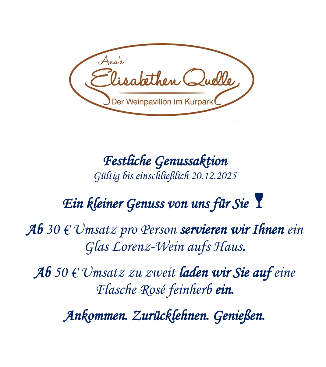 Wir sind wieder da! Ana Ceballos de Fuchs2025-04-17T23:06:21+02:00TeilenFacebookTwitterLinkedInWhatsapp Ähnliche Beiträge Gallerie Unsere aktuellen Öffnungszeiten 1. Juni 2025 Gallerie Schinken-Tapas Teller mit Oliven 2. April 2025 Gallerie Kubanische Live Musik 19. März 2025 Gallerie Aschermittwoch in der Elisabethenquelle 26. Februar 2025 Gallerie Valentinstag in der Elisabethenquelle 3. März 2023
